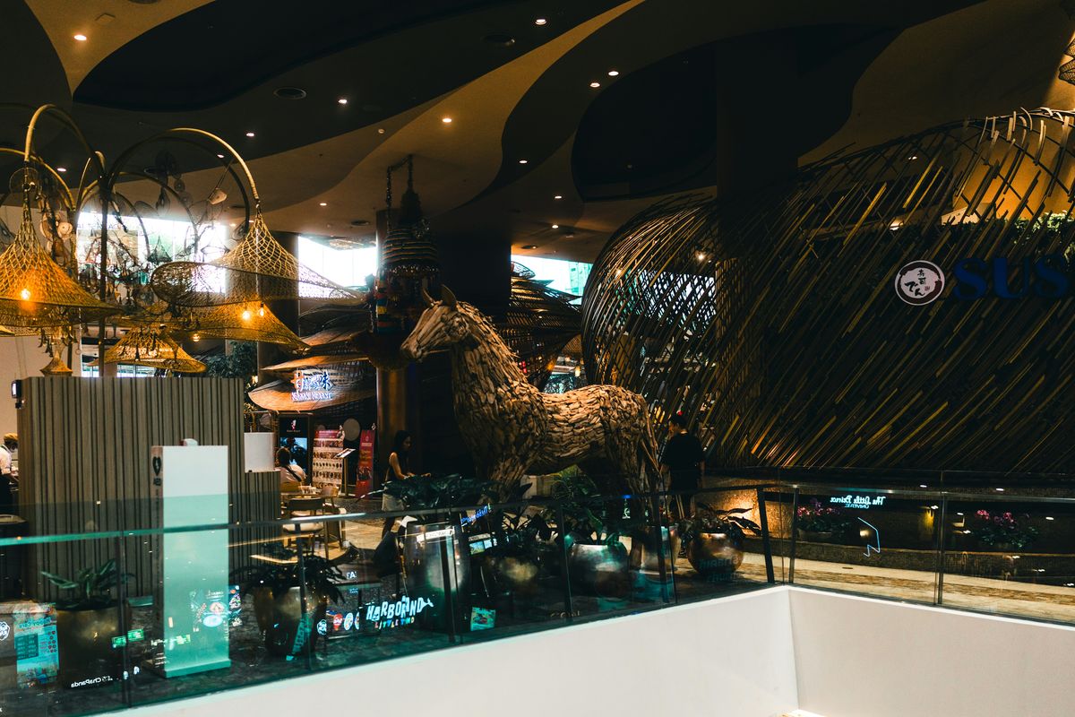 Некоторые магазины, особенно галереи и бутики, оснащены кондиционерами. Но большая часть рынка — это открытые павильоны.