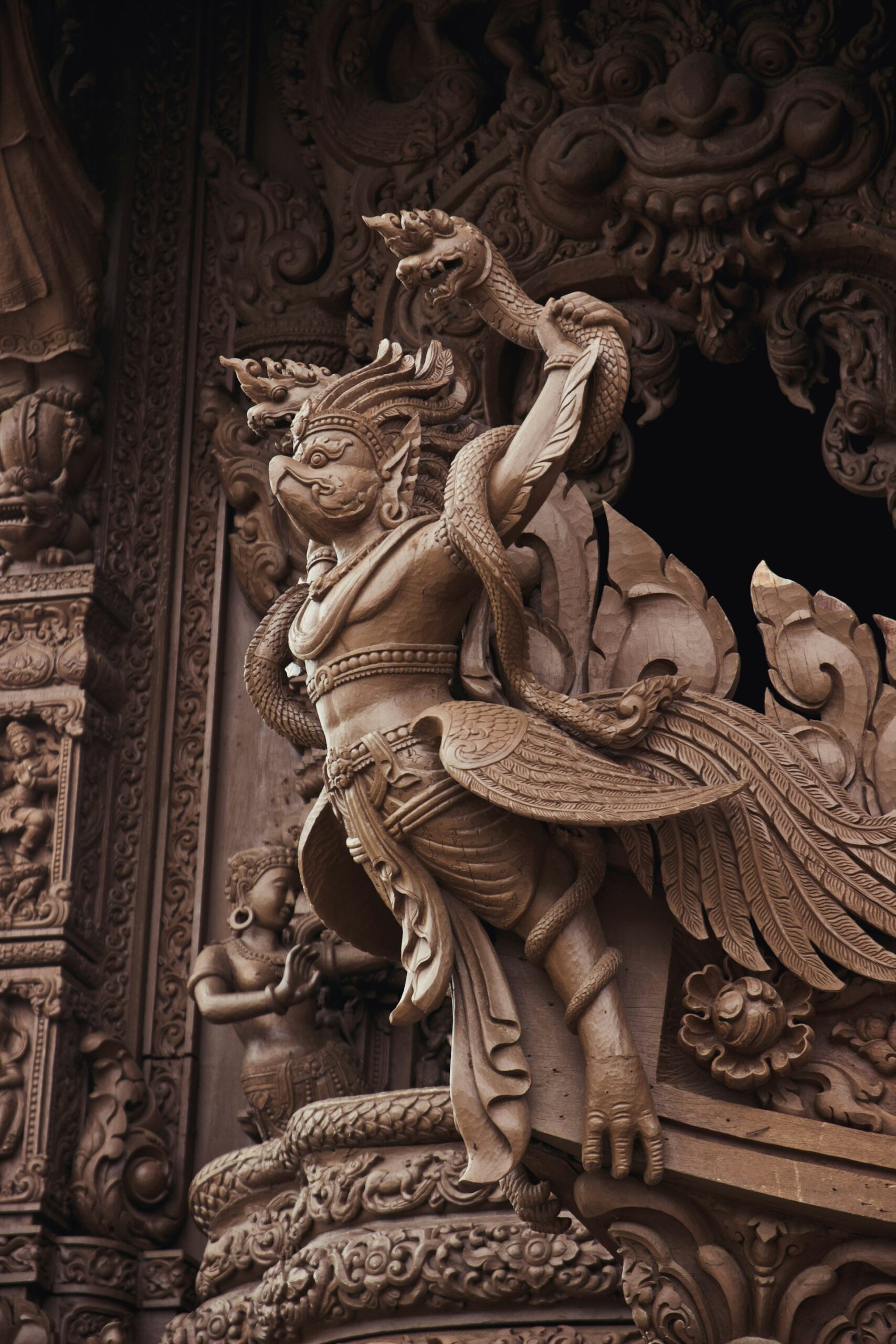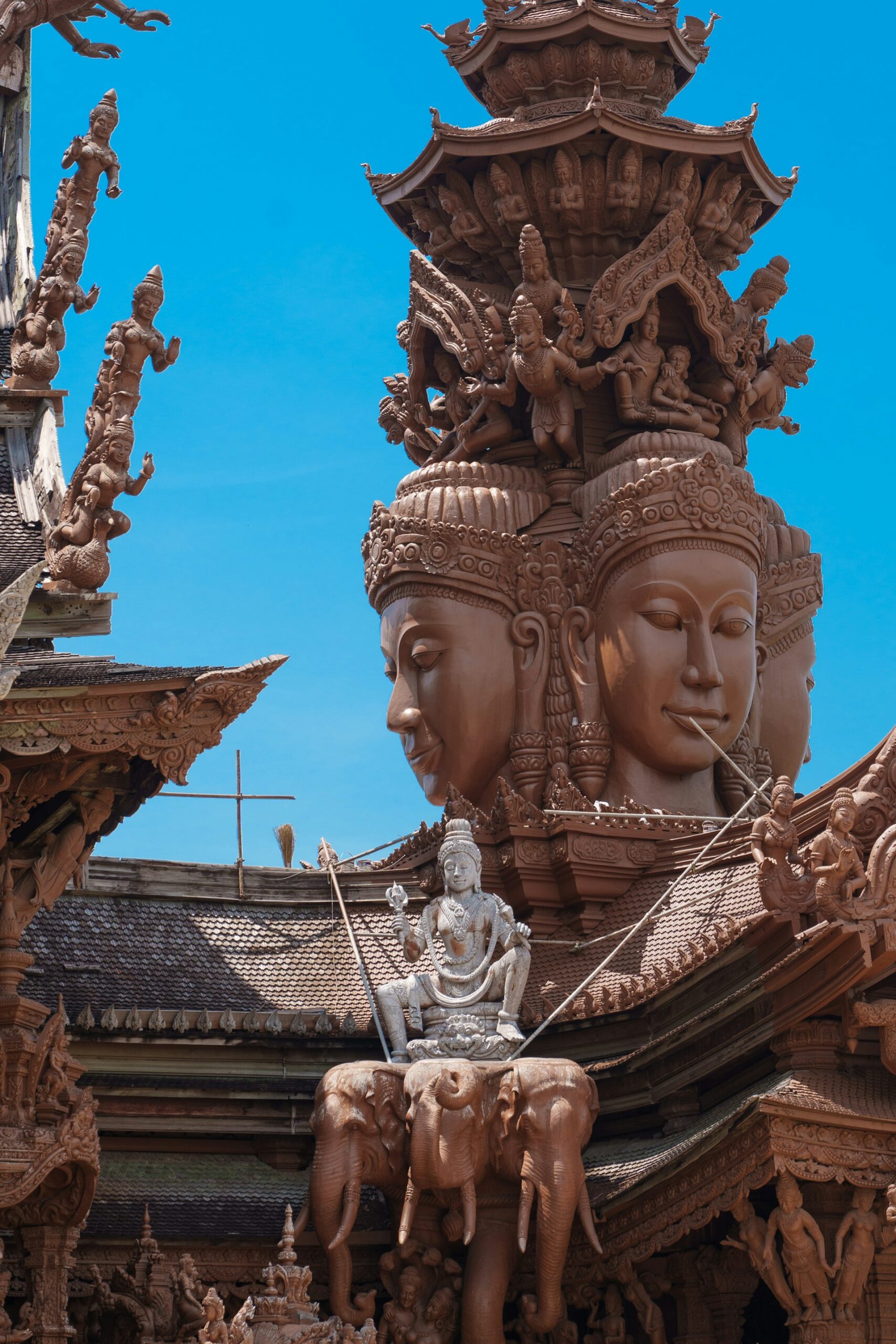Этот грандиозный деревянный храм в Паттайе полностью, до единого гвоздя (а точнее, без них, по старинным технологиям), создан из ценных пород дерева, в основном тика и красного дерева. Каждая его поверхность покрыта искусной ручной резьбой, изображающей божеств, мифических существ и сцены из эпосов Таиланда, Камбоджи, Китая и Индии. Посещая это место, вы становитесь свидетелем непрерывного творческого процесса — прямо на ваших глазах мастера продолжают вырезать новые детали. Именно поэтому всем посетителям на входе выдают каски. 👷‍♂️